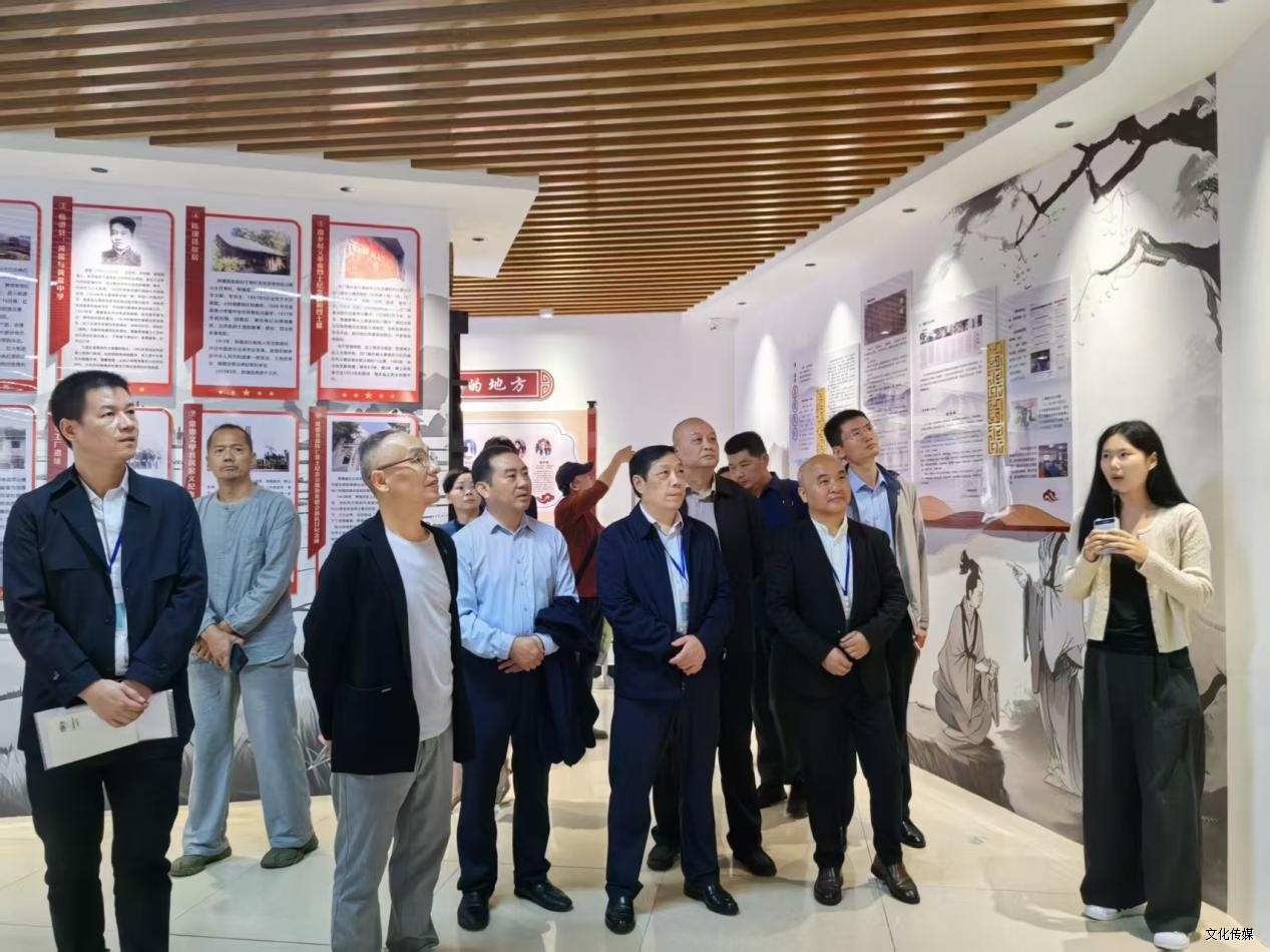 9月27日上午,来校参加常德市民间文艺家协会高校专业委员会成立大会的湖南省民间文艺家协会秘书长王涘海、副秘书长吕学品,常德市文联党组书记、主席蔡胜猛,常德文联副主席、湖南省民间文艺家协会志愿服务团团长、常德市民间文艺家协会主席李海华等一行十余人,来到我院“常德市地方文化科普基地”和“国家级非遗传承基地”参观指导。在科普基地,专家们听取了2022级汉语言文学专业学生曾思颖对基地所展示善卷文化、阳明文化、红色文化、非遗文化、文旅融合等五大板块内容的讲解。在非遗传承基地,观看了在宋小峰老师的带领下6名学生排练的常德丝弦《才聚沅澧》。她们专业的舞姿、体态,还有婉转动听的唱腔,让在场领导赞不绝口。蔡主席笑着说:这曲调真好听,有点像《生在潇湘多自豪》。李海华主席解释:包括常德丝弦在内的地方戏曲都有其固定的调式。省民间文艺家协会秘书长王涘海频频点头称赞,对传承基地的工作作了展望,他说希望在以后能听到和看到来自基地的更多作品。