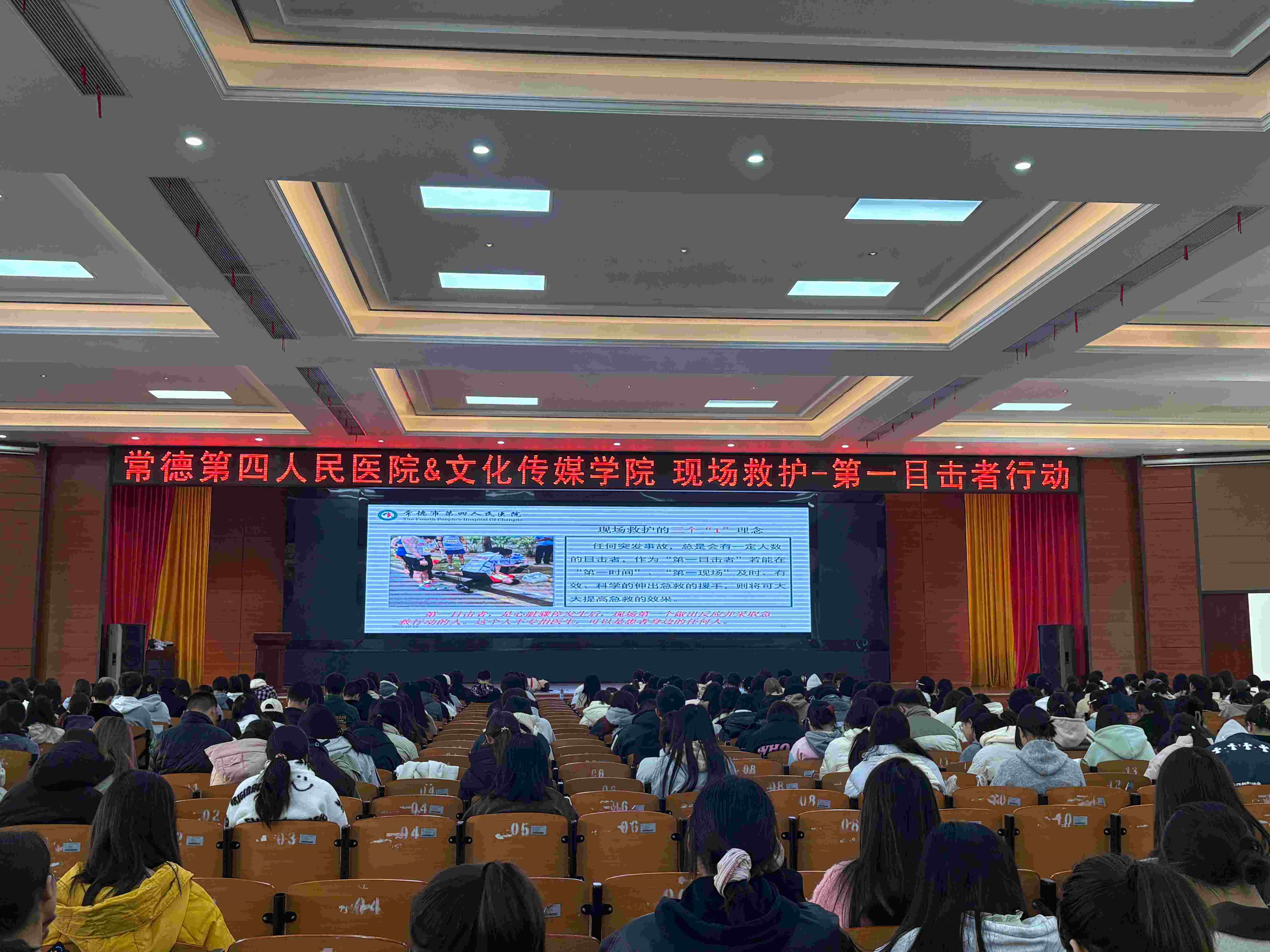 为提升学生应急救护能力,普及现场急救知识,筑牢校园安全防线,2025年10月22日,文化传媒学院联合常德市第四人民医院成功开展“现场救护-第一目击者行动”专题培训活动,让“人人学急救,急救为人人”的理念深入人心。