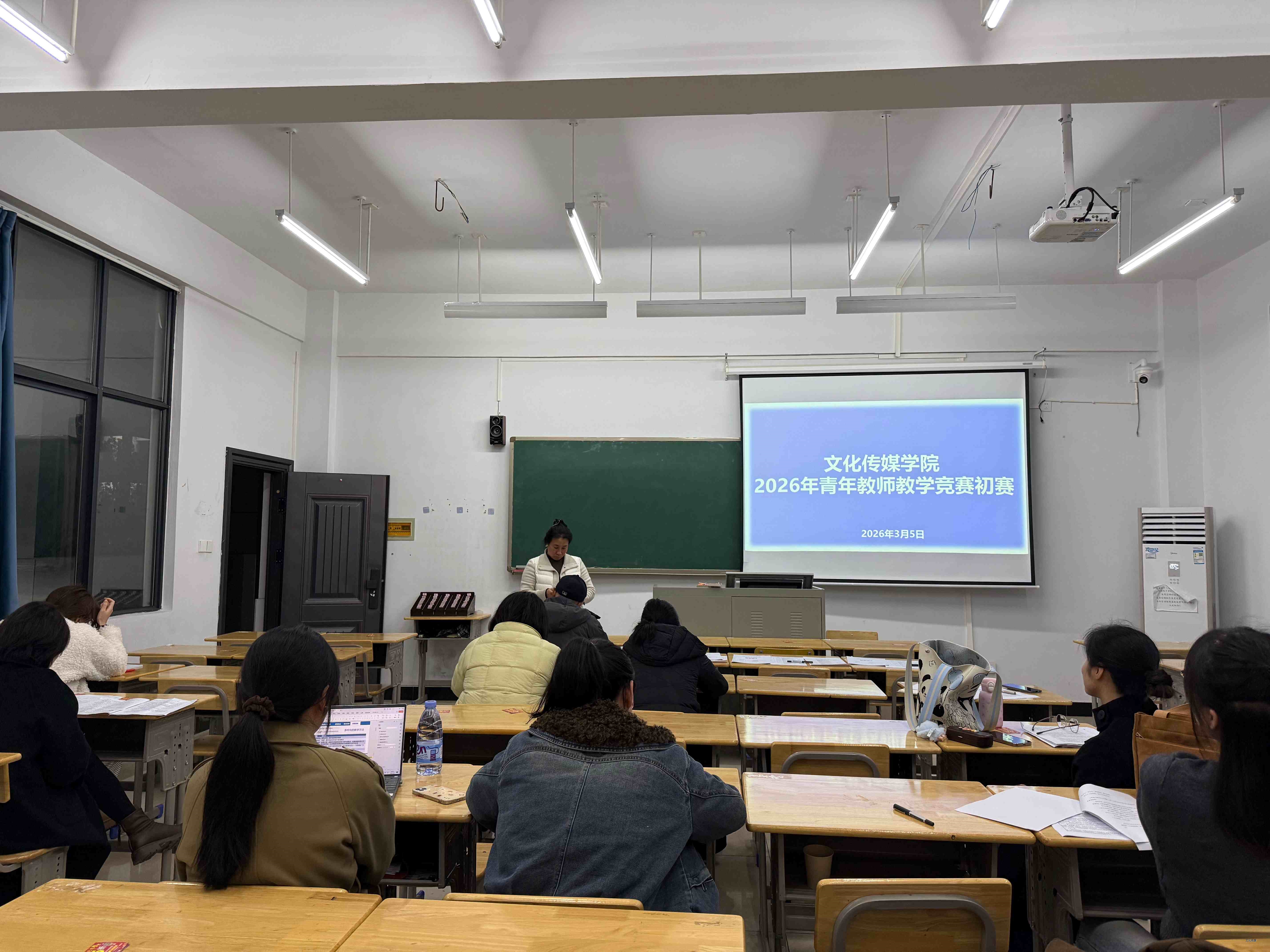 为深化教学改革,提升教师教学能力与创新水平,搭建教学交流展示平台,根据学校赛事要求,文化传媒学院于3月5日顺利举办2026年青年教师教学竞赛、教师教学创新大赛初赛,6位教师同台竞技、各展所长,学院邀请学校教学竞赛指导专家罗兴文教授和教学质量督导专家罗昂教授为教学竞赛做专业指导。