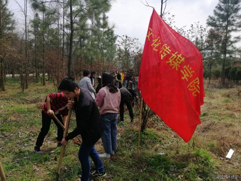 2019年3月12日,我院在学校的领导下积极组织学生参与植树活动。本次活动由郑兵老师,吴青青老师带领30位同学代表文化传媒学院在西校区的树林中种植了73棵树苗。