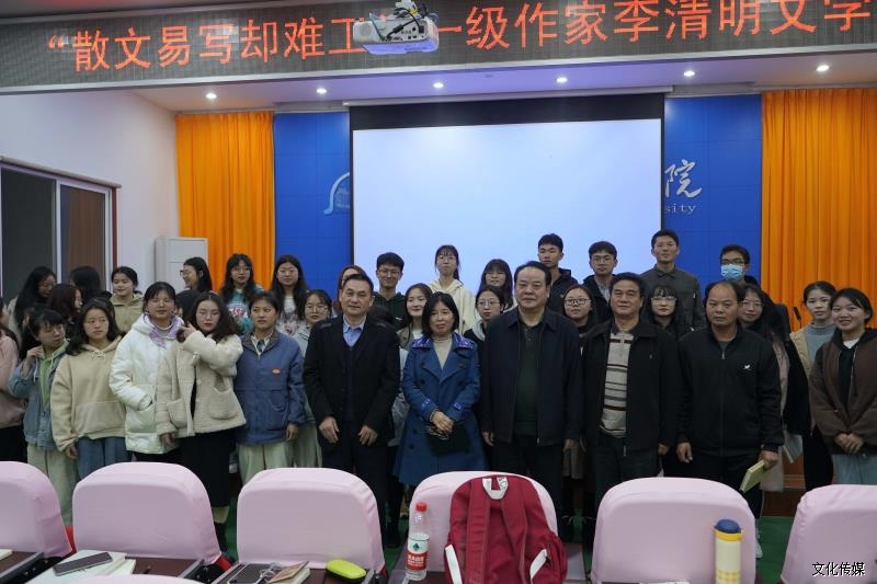 2021年4月1日,拂满一身“清明时节雨纷纷”的诗意,国家一级作家李清明接受文化传媒学院的邀请,在常德市文联副主席李万军的陪同下,走进了湖南应用技术学院广言堂,为280余名师生作了一场题为“散文易写却难工”的精彩讲座。