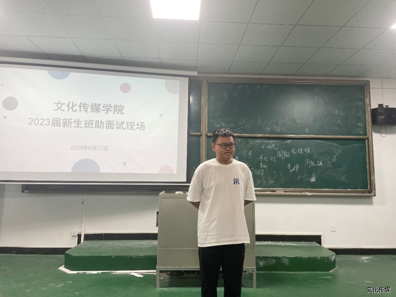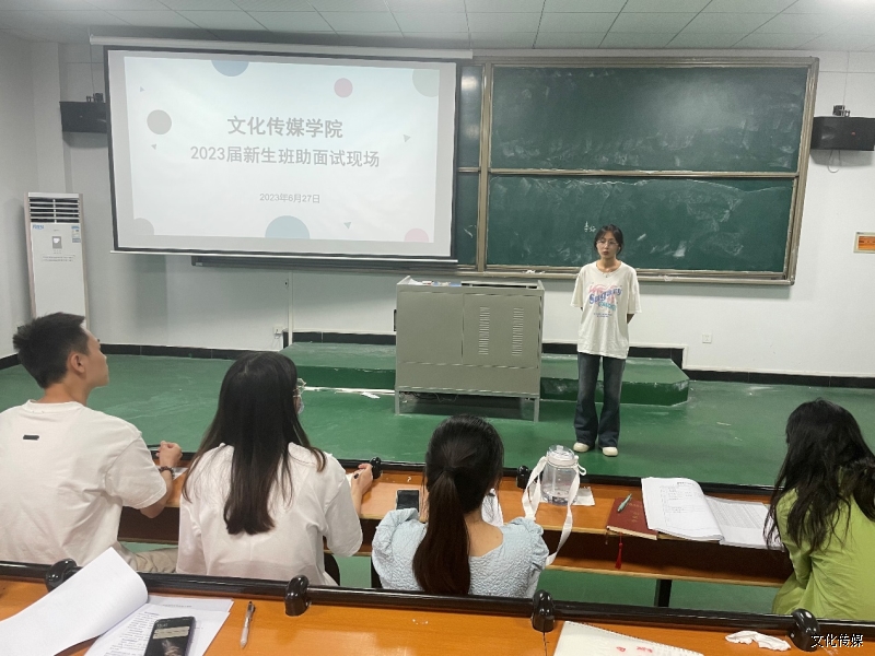 为更好的帮助2023级新生更快更好的适应大学生活,文化传媒学院特举办2023级新生班助选拔。2023年6月27日下午15点,文化传媒学院学工办主任陈虹、文化传媒学院学工干事黄佳玉、辅导员潘蓉、辅导员肖波、辅导员张莉为本次面试官。